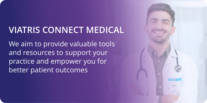 You are moving from Viatris Connect Medical website to an affiliated website or a third party website which is solely responsible for its content, including compliance with applicable guidelines in certain regions. Links to Viatris Connect Medical affiliated websites and third party websites are provided as a resource to our visitors and may not be governed by the same regulatory requirements that apply to this website. Affiliated website or Third party websites are subject to their own terms, notices and data protection practices. In addition, if Affiliated website or Third party websites are subject to the laws of other countries, regulatory requirements for data protection or medical practices may differ among countries and the information provided may not be suitable for use in your country.